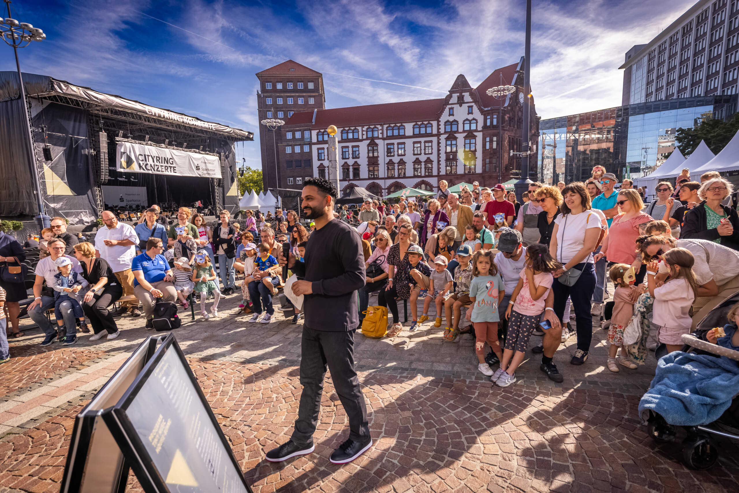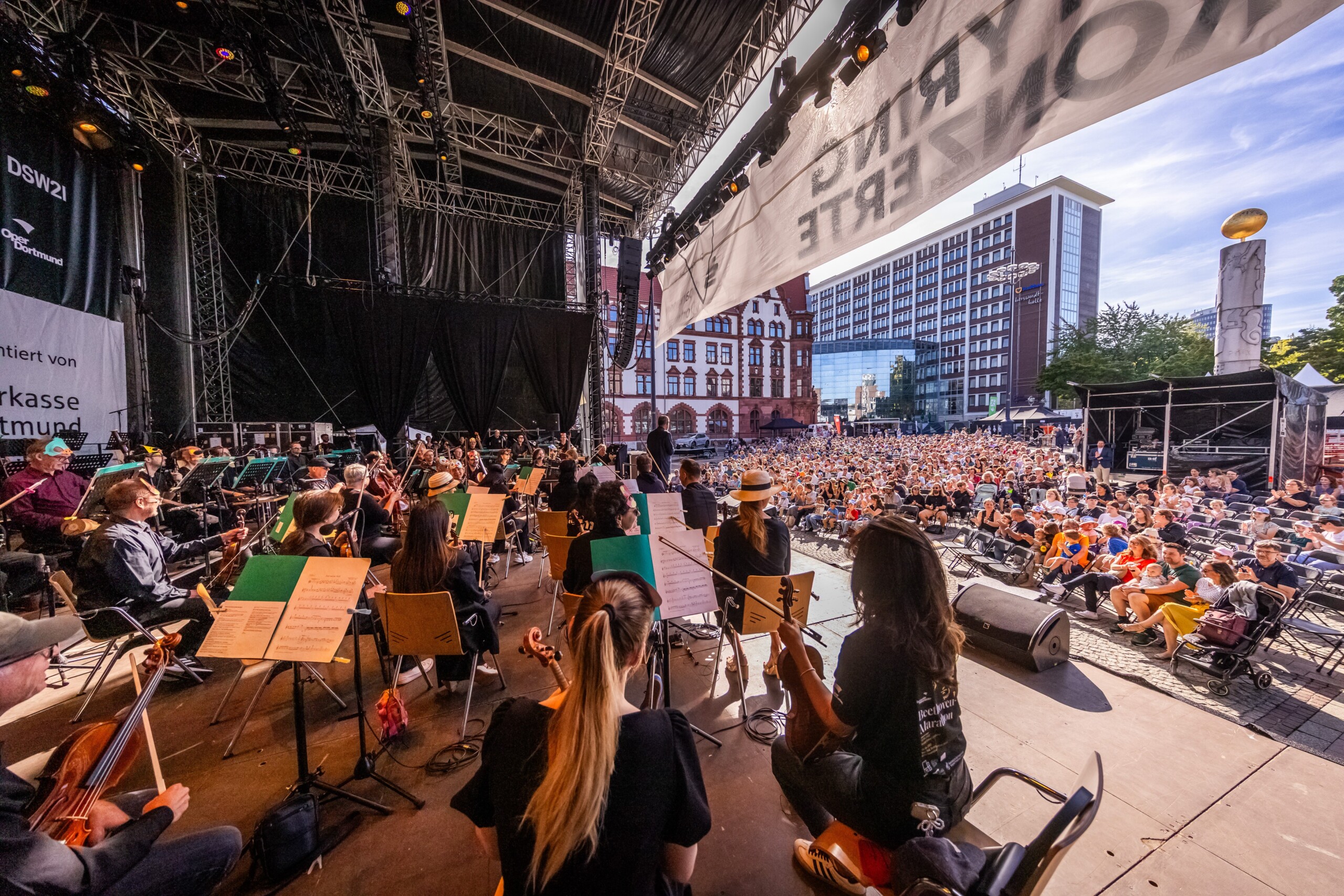 Am Sonntagvormittag gehört der Friedensplatz den jungen Musikfans: Beim Familienkonzert „The Young Person’s Guide to the Orchestra“ werden Instrumente vorgestellt, die man kennt – und solche, die man vielleicht noch nie gesehen hat. Jedes hat seinen eigenen Klang, jedes seinen Platz im großen Ganzen. Mit dabei in besonderer Rolle: Dortmunds Oberbürgermeister Alexander Kalouti. Der Eintritt ist frei, eine Reservierung ist erforderlich.